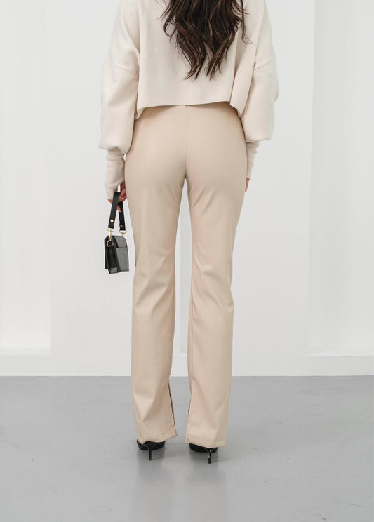 İndirim 40%🅥🅔🅝🅛🅞🅡🅐™ İspanyol Yırtmaçlı Paça Deri Pantolon