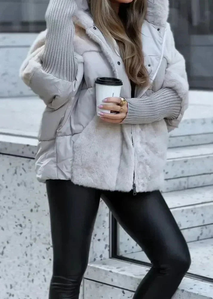 🅥🅔🅝🅛🅞🅡🅐™ Triko Detaylı Peluş Mont